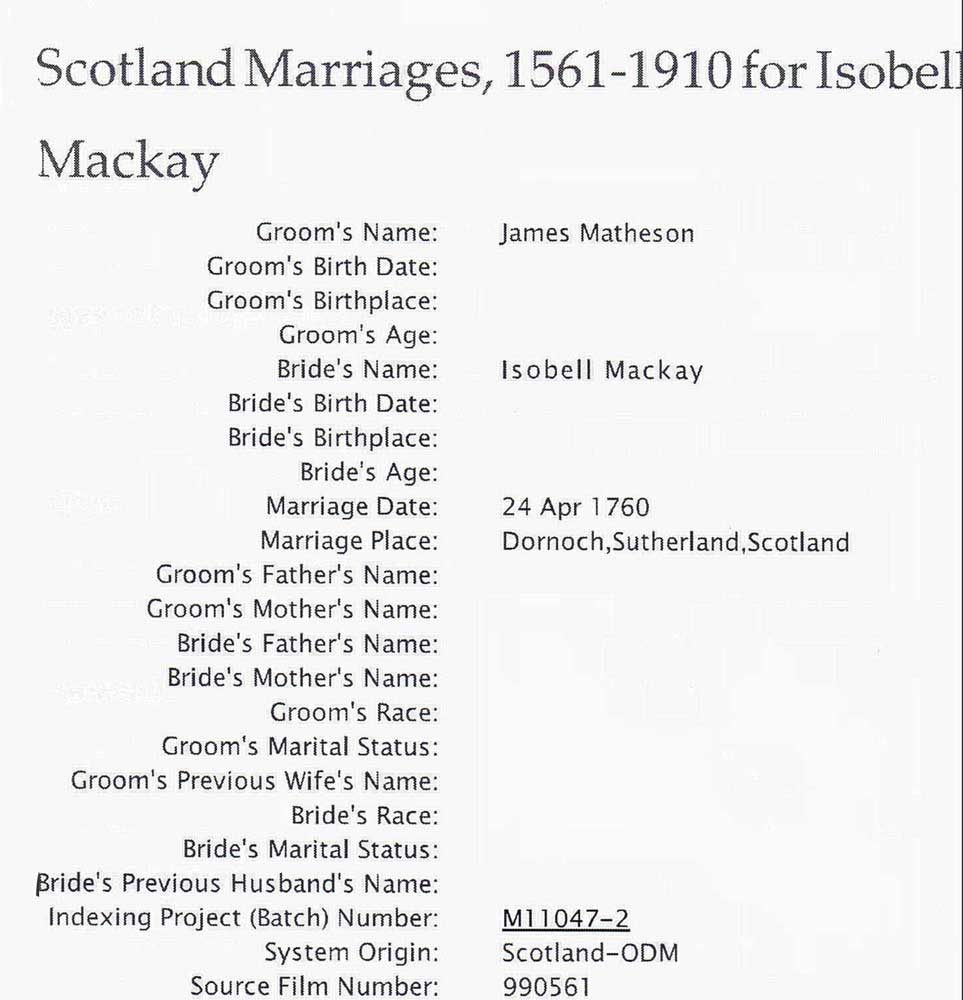 Matheson Family Line